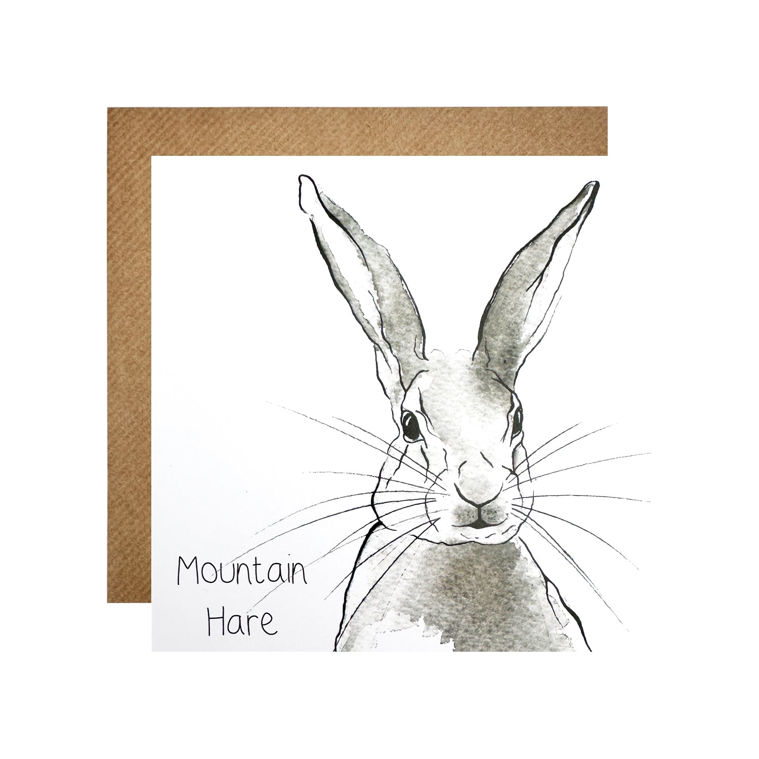 A contemporary watercolour illustration, featuring a wild mountain hare.